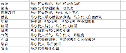 ,這時候如何構建內容,就非常清晰了,直接從詞庫中找關鍵詞然后寫內容就可以,總比成天寫”馬爾代夫報價”,“馬爾代夫旅游報價”等無價值文章,做所謂的核心詞表現要好很多。,