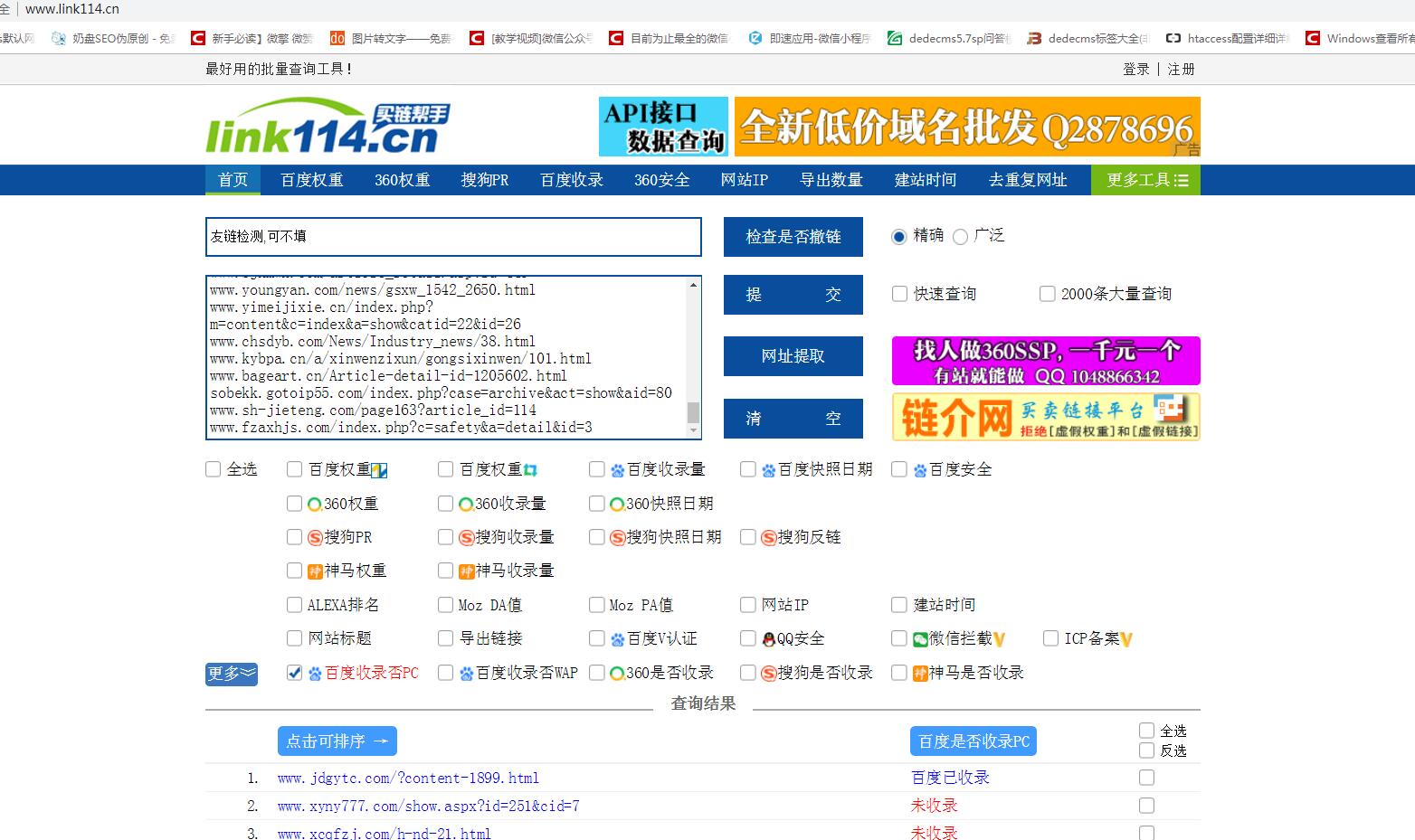 而且小編還發現了一個他的隱藏功能,那就是考核編輯時使用,將編輯發的文章放到里邊,勾選百度是否收錄,直接就能查詢該文章是否收錄,大家感覺114買鏈幫手是不是很好用呢?在此也希望114買鏈幫手能夠增加更多的功能,變得越來越好。