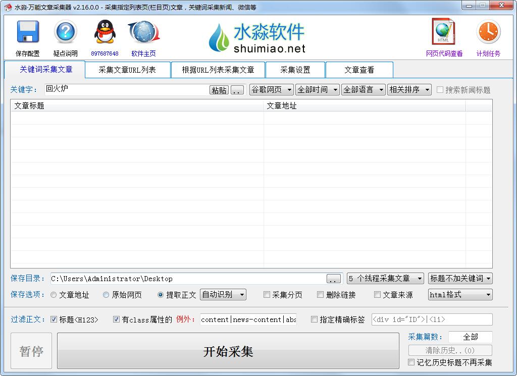 水淼采集器是水淼軟件出品的一款萬能文章采集軟件,可以只需輸入關鍵字就能采集各種網頁和新聞,還可以采集指定列表頁(欄目頁)的文章。其功能介紹如下: