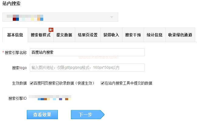 完成站內搜索創建后,您還可以做進一步的配置或修改,目前站內搜索工具的設置平臺包含以下8個功能卡片:
