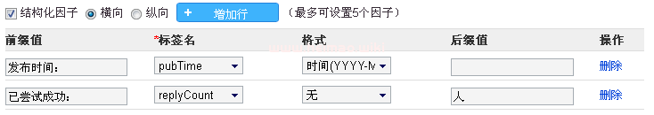 限定上述標簽的value展現時用的格式,多數情況下可保持默認值“無”,除非結構化因子的存儲格式不符合展現需要,如時間類型的存儲格式為YYYY-MM-DDThh:mm:ss
