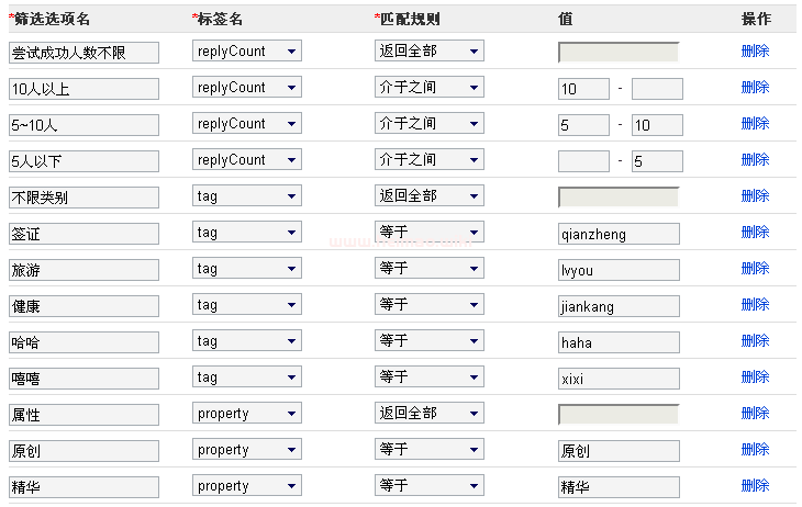 和value一起定義每個篩選選項的規則