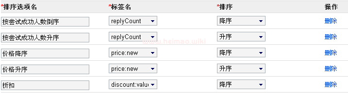 用于定義結果頁展現的排序選項名稱
