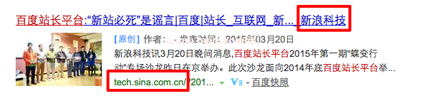 1,站點中文名:您提交站點中文名稱后,如果PC搜索結果TITLE過長,我們會自動對TITLE進行截斷并在最后加上站點的名文名稱,起到站點名告知的作用。后續該邏輯也會在移動搜索端使用。