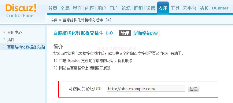 步驟五:啟用百度結構化數據插件后,驗證對應的論壇地址。如下圖: