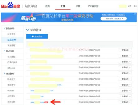 近期為方便大家及時了解站點是否進入了百度站長平臺的VIP俱樂部,我們對站點管理的頁面做了VIP的icon顯示功能。如果你提交的域名進入了VIP俱樂部,那么在站點管理的認證域名后面會出現一個形似“”的小icon ,請各位網站管理員及時關注。