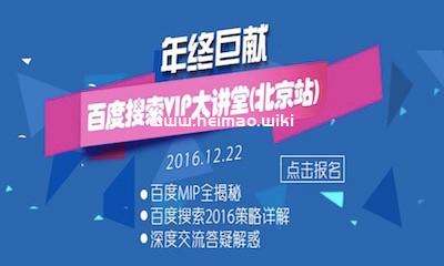 2016年12月22日,由百度站長平臺重磅打造的年度終技術盛會,”百度站長平臺VIP大講堂年終巨獻”將在北京舉行,大會面向各類站點高端技術決策人員,解讀百度搜索最前沿技術及全年搜索策略。