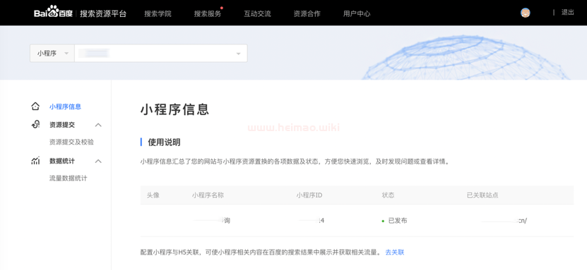 3.信息更全面:我們在新的“搜索服務”內增加了智能小程序的基本信息,開發者可查看當前百度賬號下擁有的智能小程序資源和關聯的H5信息;并隨時查看資源提交和數據統計相關數據。