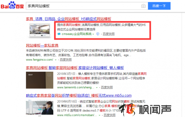 從上述三個圖中不難看出,當單一頁面添加了網頁描述 后,百度收錄文章后向搜索引擎使用者展示的信息簡短有效 。雖然網頁標題沒有直接出現搜索詞“家具網站模板”,但描述頁有體現,我們一樣能夠向搜索引擎使用者展示我們的信息,因此,潛在客戶、流量必然隨之而來 。